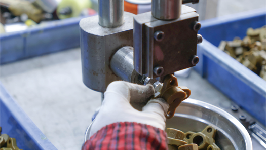 Bending machines or stamping presses shape stainless steel plates into the basic form of a faucet