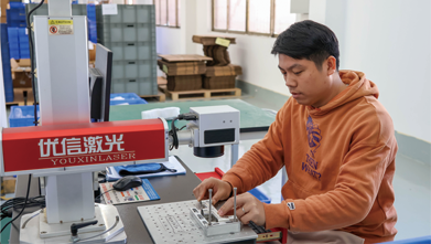 The product logo is applied using a laser marking machine